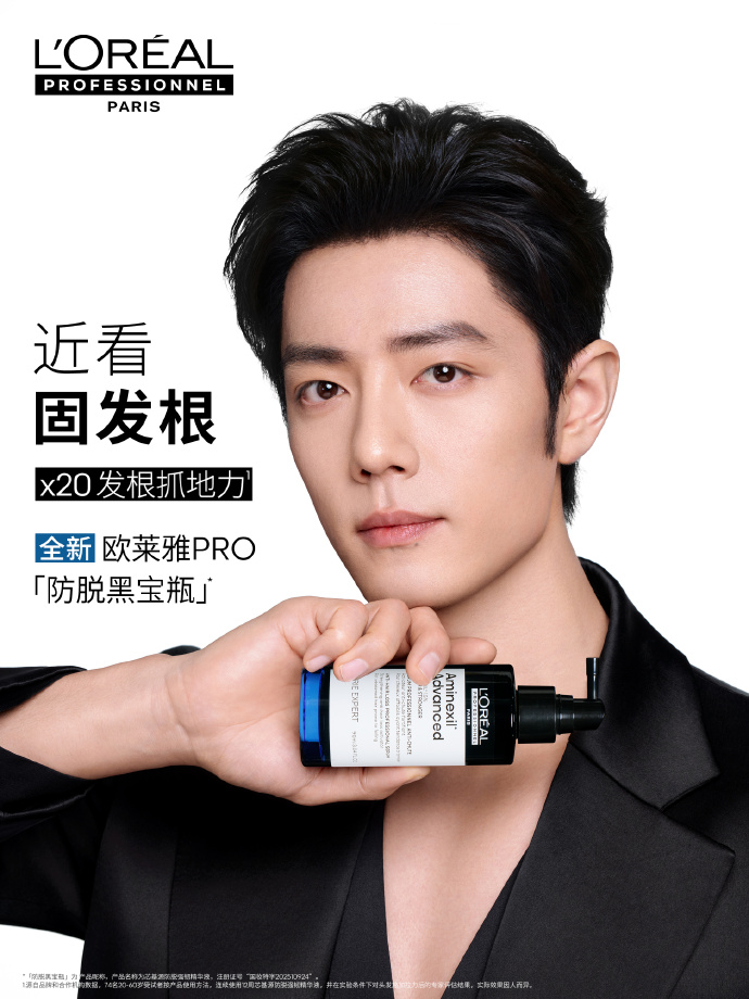 ❄️❤️🌺🌺🌺❤️ https://xiaozhanstudio.com – Up close, from afar, and around the head, the hair is thick and seamless. The new #L’Oréal Pro Anti-Hair Loss Black Bottle# nourishes and makes hair black and shiny! -by Xiao Zhan! w/ Loreal Pro!❤️🌺🌺🌺❤️❄️ #XiaoZhan #肖战 04202026